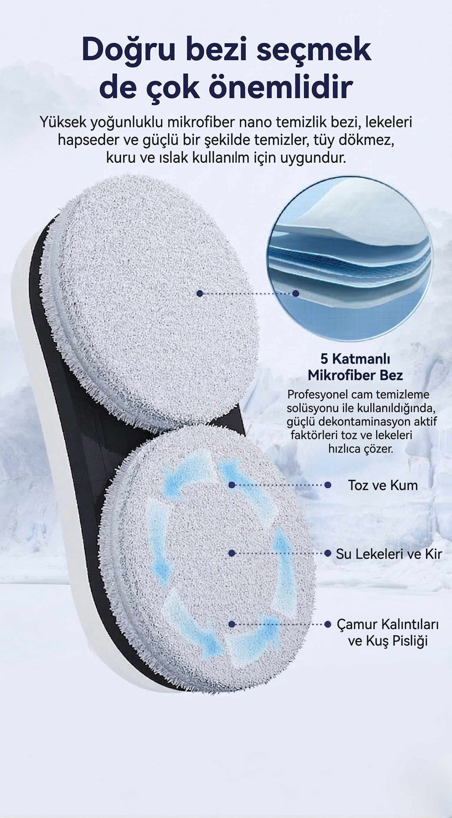 Mikron düzeyindeki sis teknolojisi ile en inatçı lekeleri bile tek seferde temizler.
