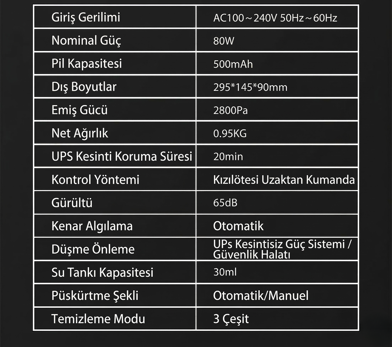- Güç Adaptörü ve Kablosu: Kesintisiz temizlik için uzun mesafeli, güvenli güç bağlantısı.